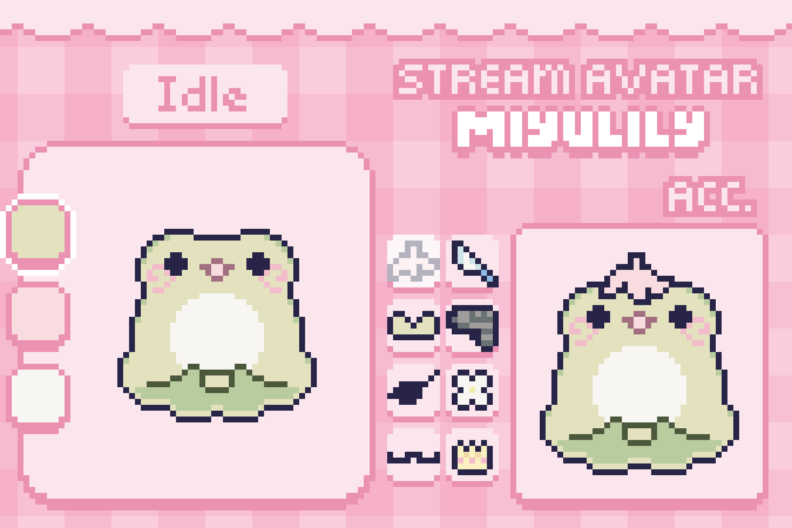 - List down all of the extra accessories, animations, and color palette: